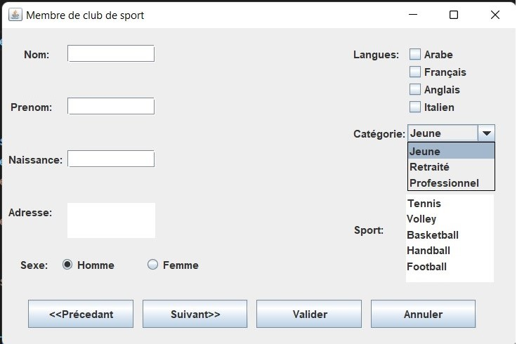 Il s'agit d'une implémentation graphique, pour une formulaire d'inscription dans un club de sport en utilisant la bibliothèque SWING